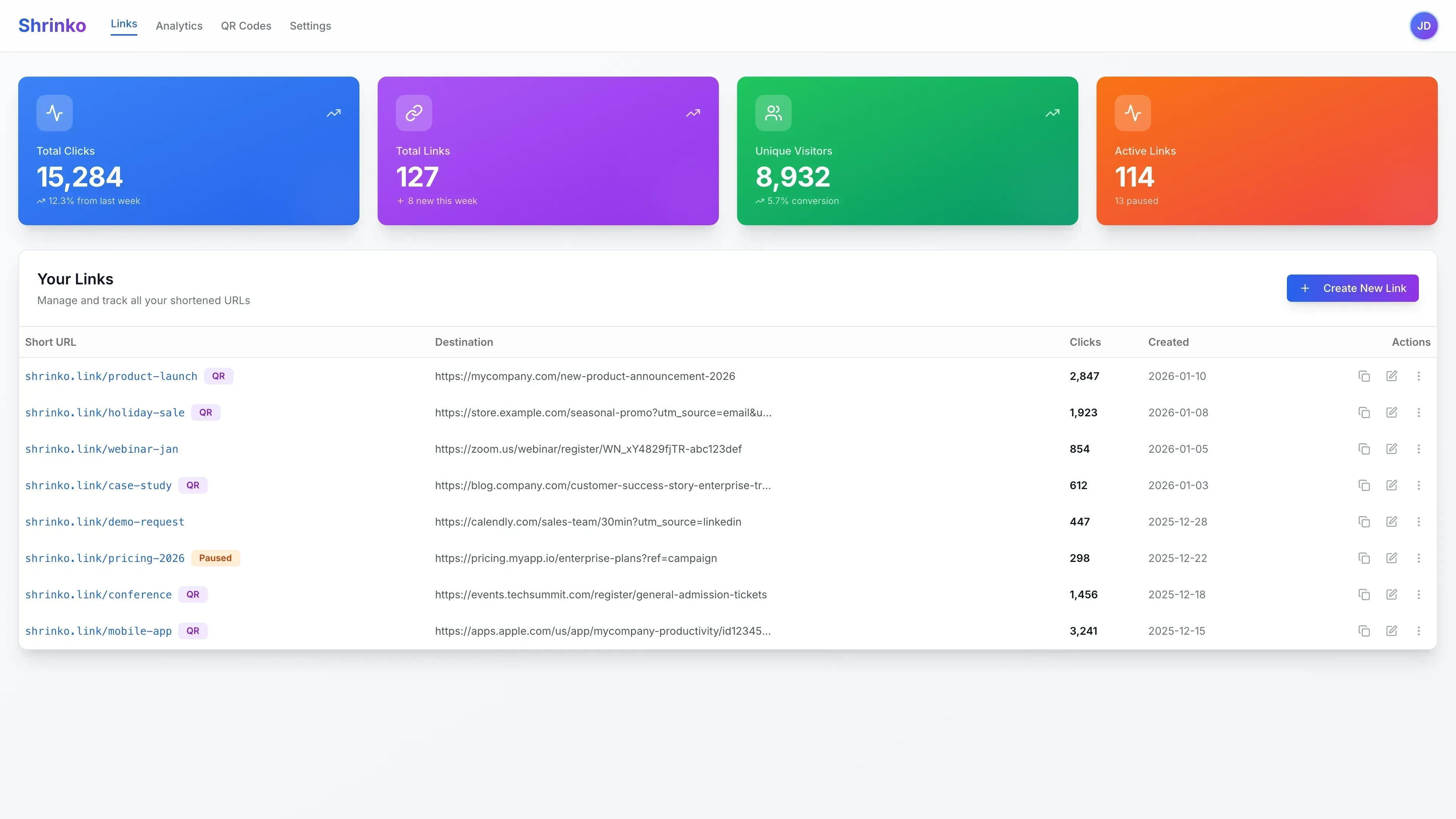 Shrinko was built to deliver clean, professional short links that never break, not bloated enterprise software. We've flipped the traditional model on its head by focusing on simplicity first.